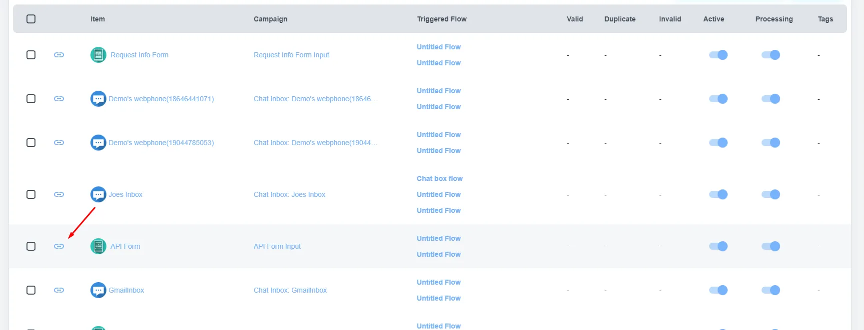 Please, click on the link icon and you will have the integration guideline under the ‘API Integration’ tab