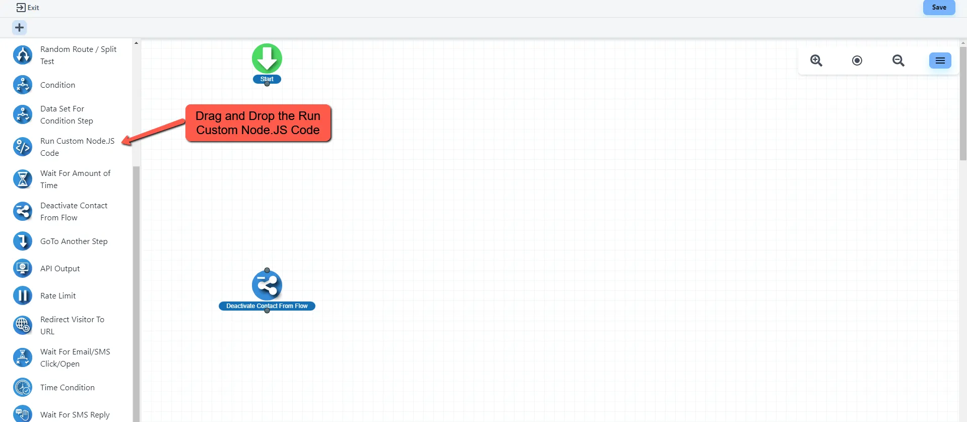 Here is the Custom Node.JS code that you can insert. You can also create a the variables from here.