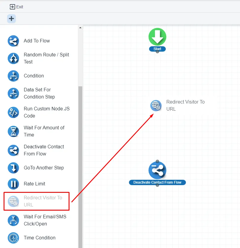 You will get the ‘Redirect Visitor to URL’ step under the logic section