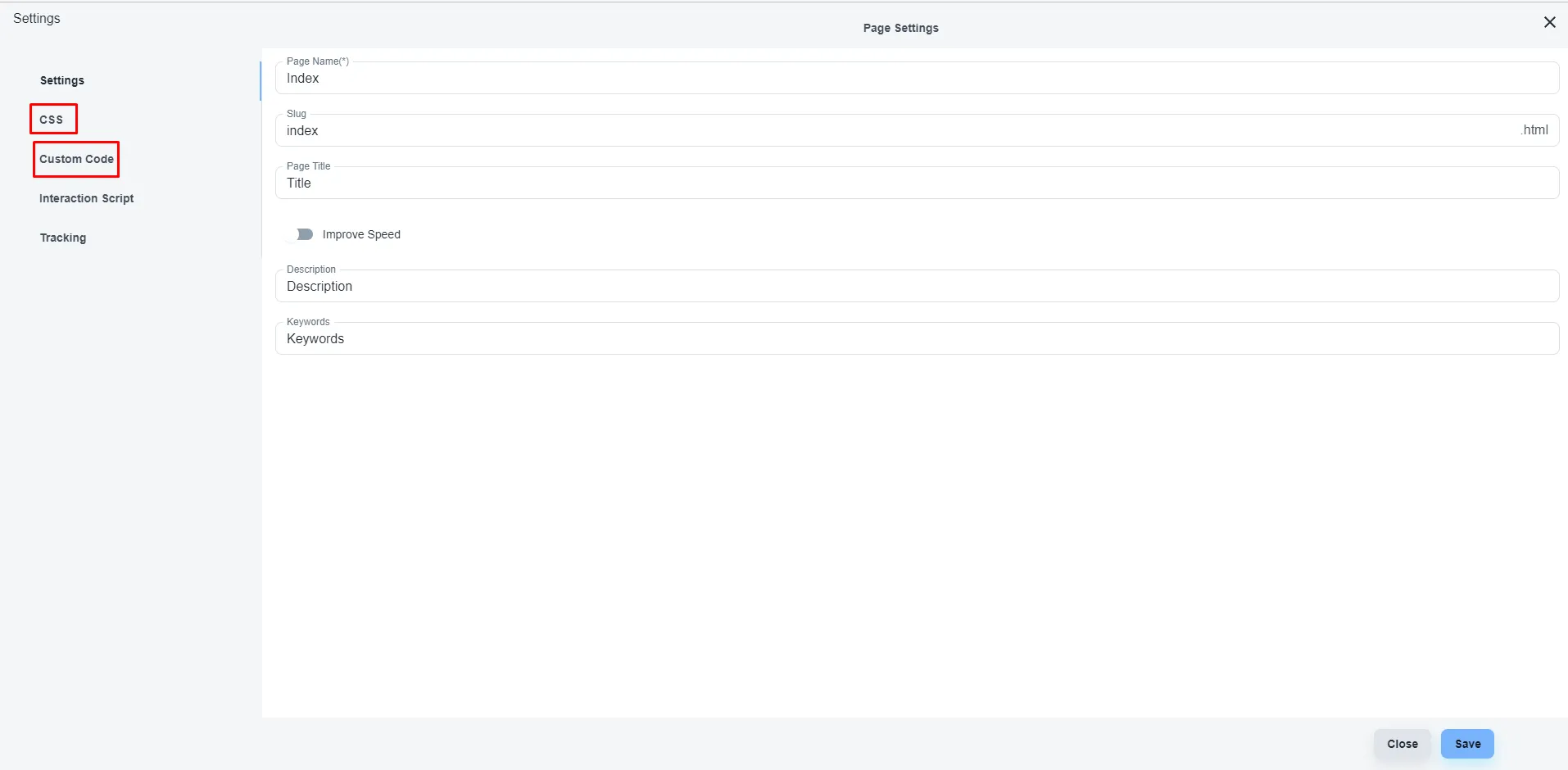With the ‘Custom Code’ option, you can add JavaScript codes for that specific page.