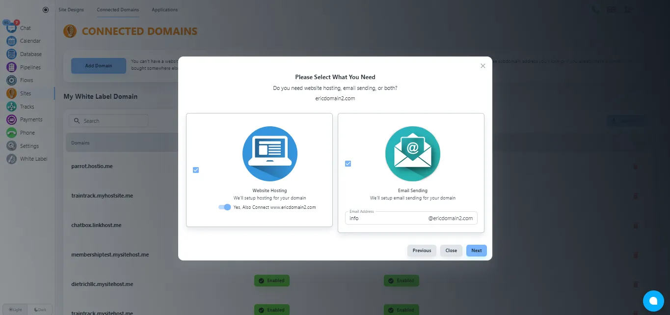 The system will allow you to add a free domain or custom domain. For our case, we will select the second option, and put your domain name.