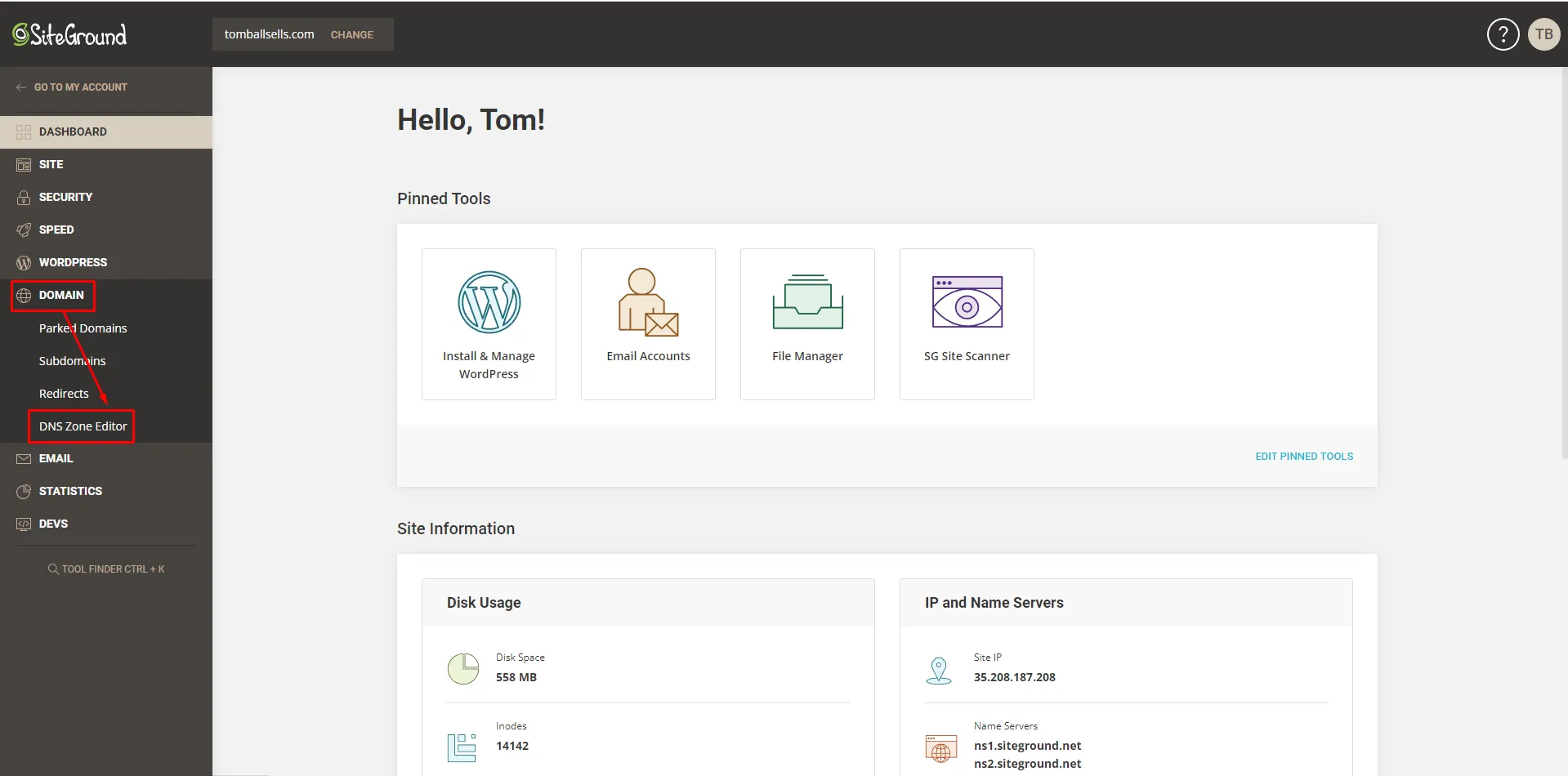 Now, click on the 'DNS Zone Editor' under the 'DOMAIN' menu.