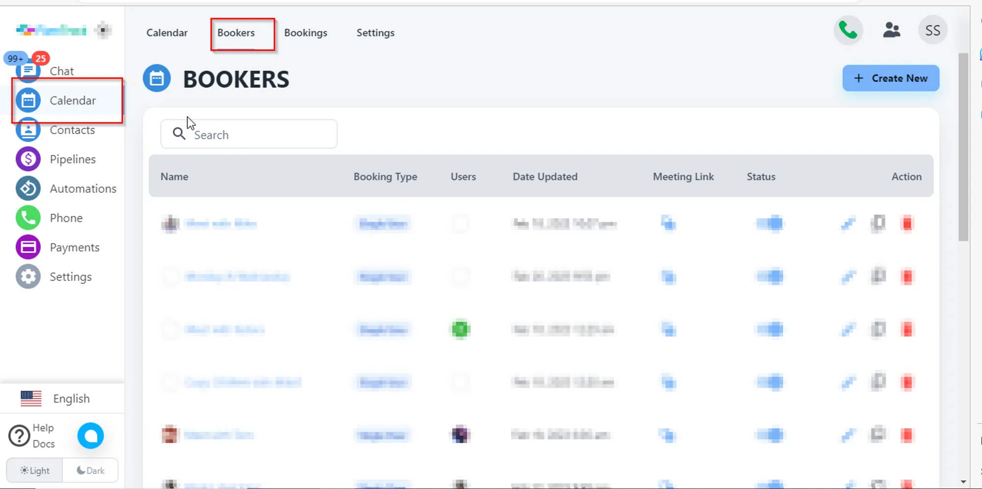 - First, you need to click on Calendar from the left bar menu then click on the Bookers option.