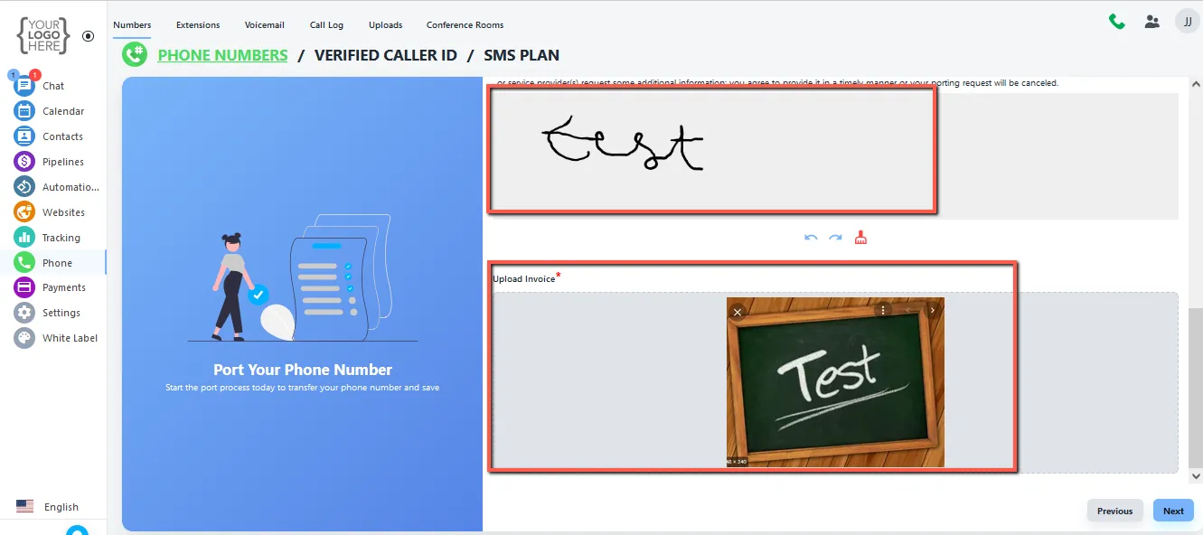 - Add authorize person detail and read carefully the terms to port a number and signed them and attached the Upload invoice.