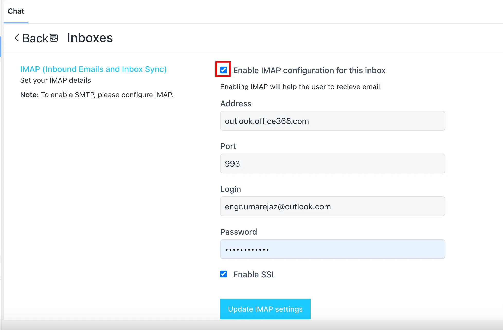 You will have to reach out to your email service provider for Address, Port and SSL. Please, confirm these details and update your IMAP Settings.